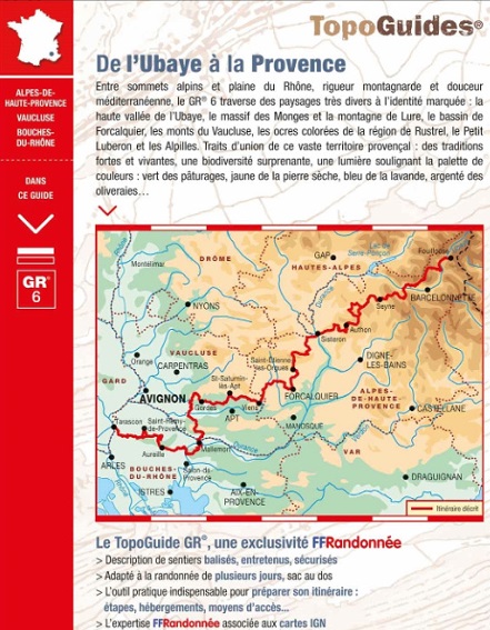 Deze gids presenteert het laatste deel van de GR6, van de Bouches-du-Rhône naar de Alpes-de-Haute-Provence. Een 20-daagse route door de vallei van de Ubaye, het Lure-gebergte en de regionale natuurparken van de Luberon en de Alpilles. De route biedt zowel het spektakel van bergpanorama's als de kleurrijke geuren van de Provence!