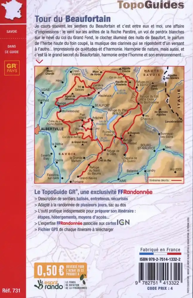 Tussen de Tarentaise in het zuiden en het Mont-Blanc gebied in het noorden ligt hier een natuurlijk berglandschap, nog niet verlaten door de oorspronkelijke bewoners, zoals dat in veel andere Franse regio's vaak wel het geval is. Hier vind je intens groene weiden waar de kuddes grazen, kleine dorpen genesteld beneden in het dal. Her en der liggen de houten chalets, soms eeuwenoud, verspreid over de bloemrijke hellingen. In Hauteluce, het vierde en laatste dorp van de Beaufortain, kunt u nog steeds door paarden voortgetrokken hooikarren tegenkomen. De cirkel van bergkammen die hier de horizon bepaalt, vormt tegelijk de grenzen van dit massief: de Mirantin, Crêt du Rey, Mont Coin, Aiguille du Grand Fond. Vanaf Queige duurt het 6 tot 8 dagen om het streekpad te voltooien. Het is ook mogelijk om 7 kleinere rondwandelingen te maken.