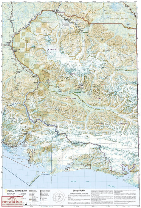 Other features found on this map include: Allen Glacier, Bagley Ice Valley, Barnard Glacier, Bering Glacier, Bering Lake, Bremner Glacier, Bremner River, Cape Saint Elias, Cape Suckling, Chisana Glacier, Chistochina River, Chitina Glacier, Chitina River, Chugach Mountains, Chugach National Forest, Columbus Glacier, Copper Lake, Copper River, Dadina River, Gakona River, Granite Range, Gulkana River, Guyot Glacier, Hanagita Peak, Hawkins Glacier, Heney Glacier, Hubbard Glacier, Icy Bay, Jatahmund Lake, Jefferies Glacier, Kaliakh River, Kanak Island, Kayak Island, Kennicott Glacier, Klutina River, Klutlan Glacier, Logan Glacier, Long Glacier, Lucia Glacier, Malaspina Glacier, Martin River, Martin River Glacier, Mentasta Mountains, Miles Glacier, Miles Lake, Mount Augusta, Mount Bear, Mount Blackburn, Mount Bona, Mount Churchill, Mount Drum, Mount Jarvis, Mount Sanford, Mount Wrangell, Nabesna Glacier, Nizina River, Nutzotin Mountains, Ocean Cape, Oily Lake, Point Manby, Point Riou, Regal Glacier, Robinson Mountains, Root Glacier, Russell Fiord, Russell Fjord Wilderness, Russell Glacier, Saint Elias Mountains, Schwan Glacier, Seward Glacier, Sheridan Glacier, Steller Glacier, Tana Glacier, Tana River, Tanada Lake, Tazlina River, Tebay Lakes, Tiekel River, Tongass National Forest, Tonsina Lake, Tonsina River, Tyndall Glacier, Walsh Glacier, Wernicke Glacier, Wingham Island, Woodworth Glacier, Wrangell Mountains, Wrangell-St. Elias National Park, Wrangell-St. Elias National Preserve, Yahtse Glacier, Yakutat Bay.