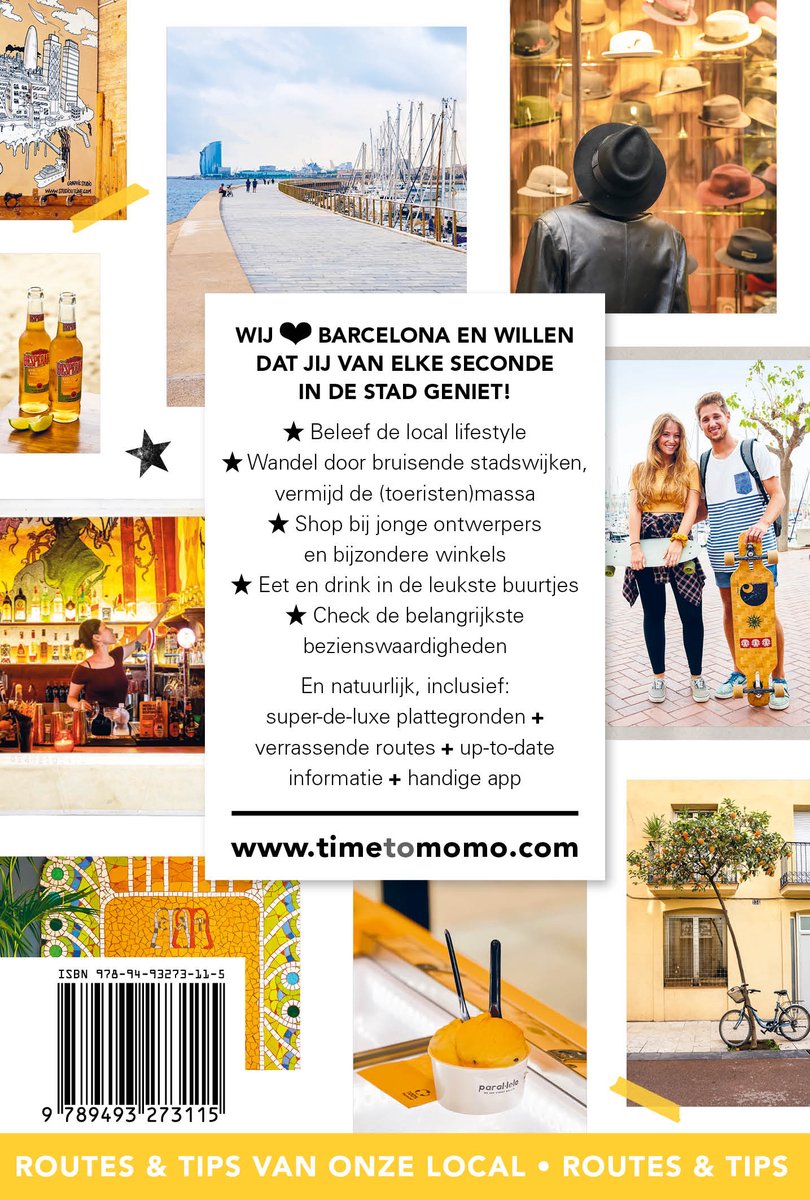 Dit is de vernieuwde versie van de 100% Barcelona-gids! Jij gaat Barcelona ontdekken! Natuurlijk wil je Gaudi's bouwwerken bewonderen en kunst kijken in het Picassomuseum of het MACBA. Maar ook échte tapas eten, winkelen waar de locals dat doen, slenteren door de oude straten van de middeleeuwse binnenstad en uitwaaien op het strand. Sla ook de kleurrijke markthallen niet over, waar de locals hun boodschappen doen. En als de zon onder is, is het tijd om tot in de vroege uurtjes van het nachtleven te genieten.Met time to momo Barcelona op zak kun je 100% onvoorbereid het vliegtuig in stappen. Met onze routes leiden wij je namelijk langs al onze favoriete adressen in de stad en delen we alleen de échte highlights met je. Zo sla je de drukke shopboulevards over en wandel je, onderweg een must see meepikkend, via een fijn koffietentje naar de leukste conceptstores. Wij willen dat je 100% van je citytrip geniet!