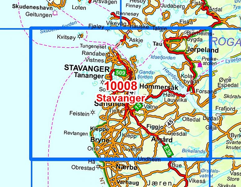 Kaarten en gidsen > Wandelen > Wandelkaarten > Europa > Scandinavië (& Noordpool) > Noorwegen > Zuid-Noorwegen > Topografische wandelkaart 10008 Stavanger 1:50,000