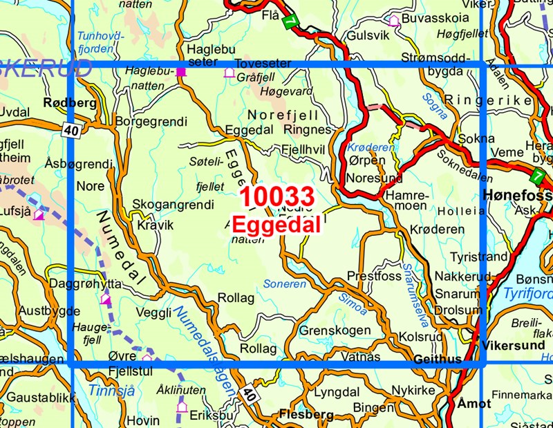 Kaarten en gidsen > Wandelen > Wandelkaarten > Europa > Scandinavië (& Noordpool) > Noorwegen > Zuid-Noorwegen > Topografische wandelkaart 10033 Eggedal 1:50.000