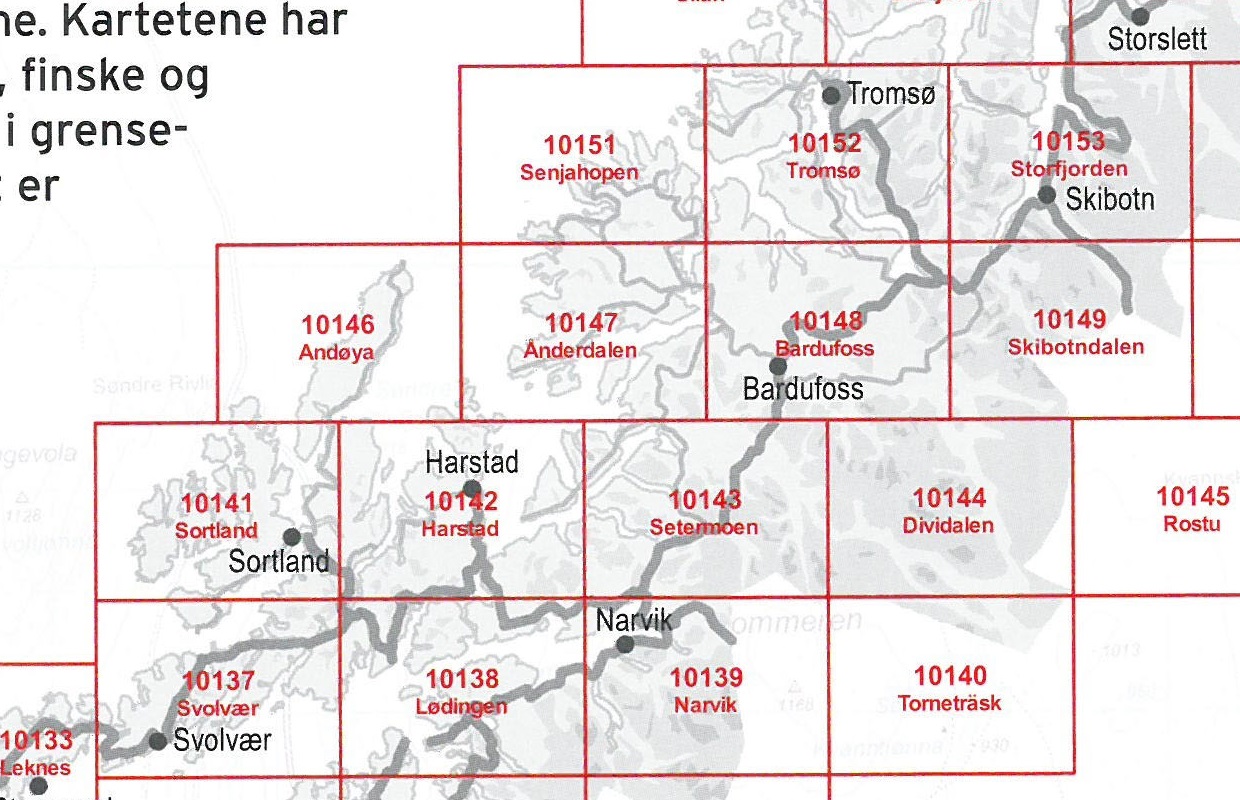 Kaarten en gidsen > Wandelen > Wandelkaarten > Europa > Scandinavië (& Noordpool) > Noorwegen > Noors Lapland > Topografische wandelkaart 10143 Setermoen 1:50.000