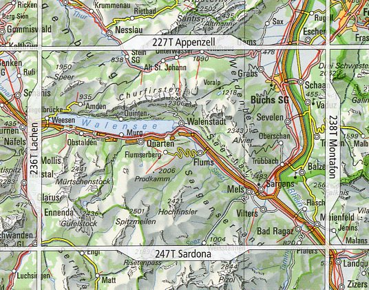 wandelkaart Walensee, Buchs, Spitzmeilen, Sargans