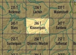 Kaarten en gidsen > Wandelen > Wandelkaarten > Europa > Zwitserland en Oostenrijk (en Alpen als geheel) > Zwitserland > Midden- en Oost-Zwitserland > topografische wandelkaart 246T Klausenpass [2022]