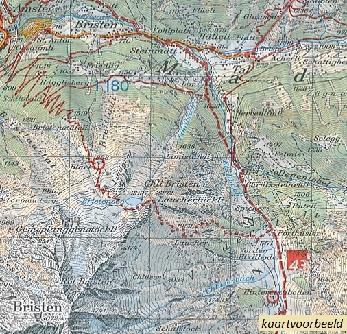 Topografische wandelkaart. Speciale versie van de Landeskarten der Schweiz 1:50.000, met opdruk van wandelroutes (rood aangegeven). Zeer nauwkeurige en betrouwbare cartografie. Het zijn met voorsprong de beste wandelkaarten die - op deze schaal - in Zwitserland worden gemaakt.