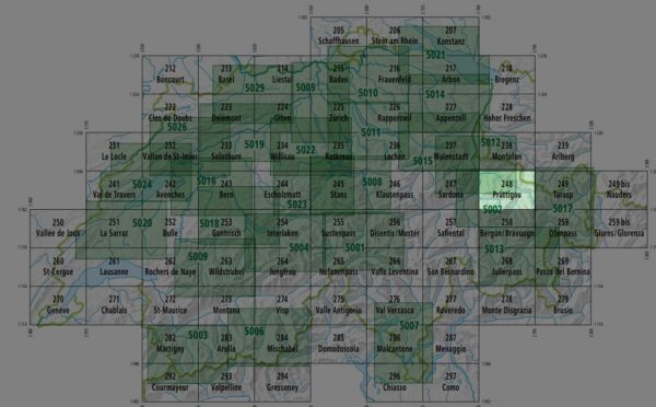 Kaarten en gidsen > Wandelen > Wandelkaarten > Europa > Zwitserland en Oostenrijk (en Alpen als geheel) > Zwitserland > Graubünden > topografische wandelkaart 248T Prättigau [2019]