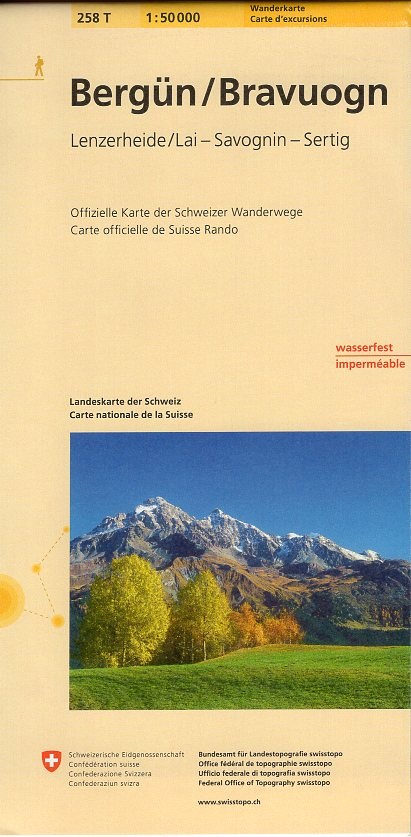 Kaarten en gidsen > Wandelen > Wandelkaarten > Europa > Zwitserland en Oostenrijk (en Alpen als geheel) > Zwitserland > Graubünden > topografische wandelkaart 258T Bergün [2022]