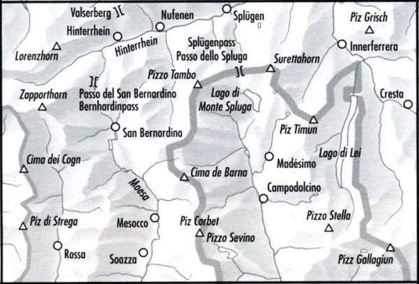wandelkaart Hinterrhein, Splügenpass, Mesocco, Campodolcino (Tessin)