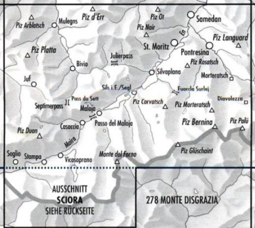 wandelkaart St. Moritz, Val Bregaglia (Bergell), Piz Bernina (Graubünden)
