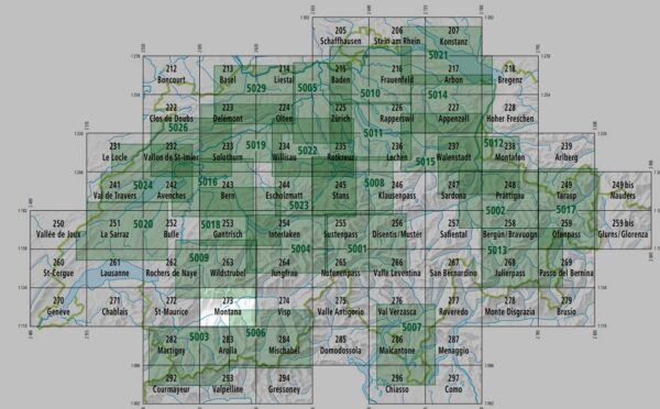 Kaarten en gidsen > Wandelen > Wandelkaarten > Europa > Zwitserland en Oostenrijk (en Alpen als geheel) > Zwitserland > Wallis > Unterwallis > topografische wandelkaart 273T Montana [2019]