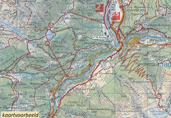 Topografische wandelkaart. Speciale versie van de Landeskarten der Schweiz 1:50.000, met opdruk van wandelroutes (rood aangegeven). Zeer nauwkeurige en betrouwbare cartografie. Het zijn met voorsprong de beste wandelkaarten die - op deze schaal - in Zwitserland worden gemaakt.