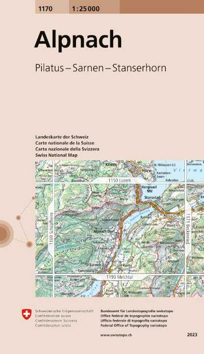 Kaarten en gidsen > Wandelen > Wandelkaarten > Europa > Zwitserland en Oostenrijk (en Alpen als geheel) > Zwitserland > Midden- en Oost-Zwitserland > topografische wandelkaart CH-1170 Alpnach [2023]