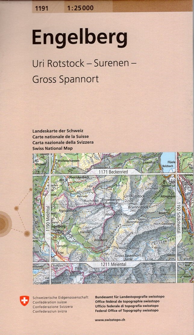 Kaarten en gidsen > Wandelen > Wandelkaarten > Europa > Zwitserland en Oostenrijk (en Alpen als geheel) > Zwitserland > Midden- en Oost-Zwitserland > topografische wandelkaart CH-1191 Engelberg [2023]