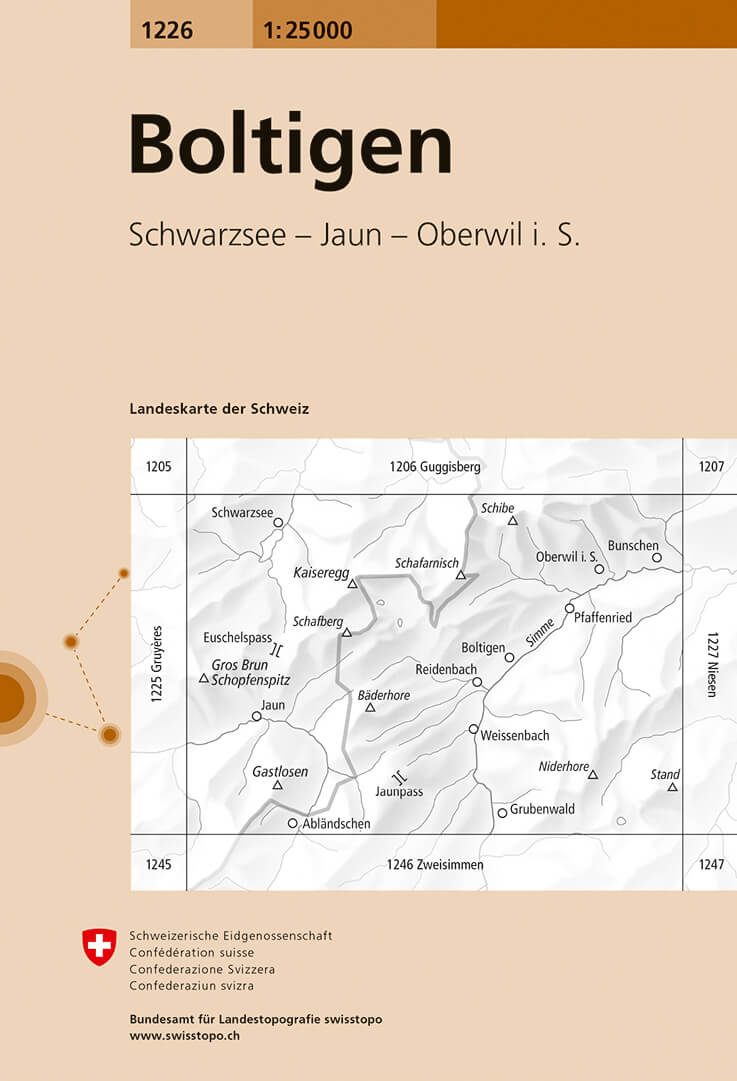 Kaarten en gidsen > Wandelen > Wandelkaarten > Europa > Zwitserland en Oostenrijk (en Alpen als geheel) > Zwitserland > Berner Oberland > topografische wandelkaart CH-1226 Boltigen [2022]