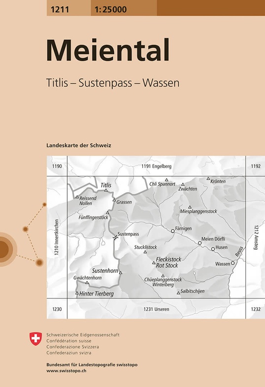 Topografische wandelkaarten van Zwitserland (Landeskarten der Schweiz), schaal 1:25.000. Kwalitatief zeer goed. Leent zich uitstekend voor het maken van wandeltochten en klimtochten, ook in hoog alpien terrein. Let wel, alle paden staan erop, maar géén gemarkeerde routes. Voor dat doel is met name de serie T-SERIE uitgegeven. Niettemin zijn deze 1:25.000 kaarten - wegens de sublieme cartografie en detaillering - perfecte wandelkaarten. De kaart zit in een door ons toegevoegd soepel transparant hoesje, ook handig tijdens het wandelen. | TIP: als je op de serienaam klikt verschijnen alle kaarten uit deze reeks, van deze regio, op nummervolgorde.