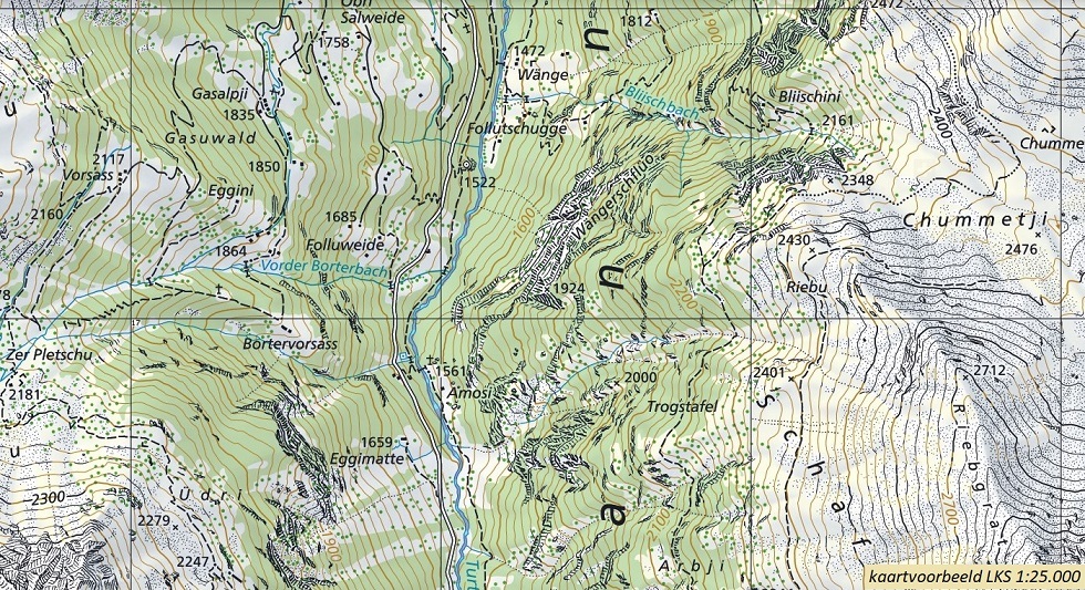 Topografische wandelkaarten van Zwitserland (Landeskarten der Schweiz), schaal 1:25.000. Kwalitatief zeer goed. Leent zich uitstekend voor het maken van wandeltochten en klimtochten, ook in hoog alpien terrein. Let wel, alle paden staan erop, maar géén gemarkeerde routes. Voor dat doel is met name de serie T-SERIE uitgegeven. Niettemin zijn deze 1:25.000 kaarten - wegens de sublieme cartografie en detaillering - perfecte wandelkaarten. De kaart zit in een door ons toegevoegd soepel transparant hoesje, ook handig tijdens het wandelen. | TIP: als je op de serienaam klikt verschijnen alle kaarten uit deze reeks, van deze regio, op nummervolgorde.