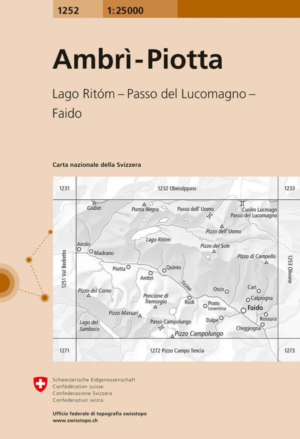 Kaarten en gidsen > Wandelen > Wandelkaarten > Europa > Zwitserland en Oostenrijk (en Alpen als geheel) > Zwitserland > Tessin, Ticino > topografische wandelkaart CH-1252 Ambri-Piotta [2023]
