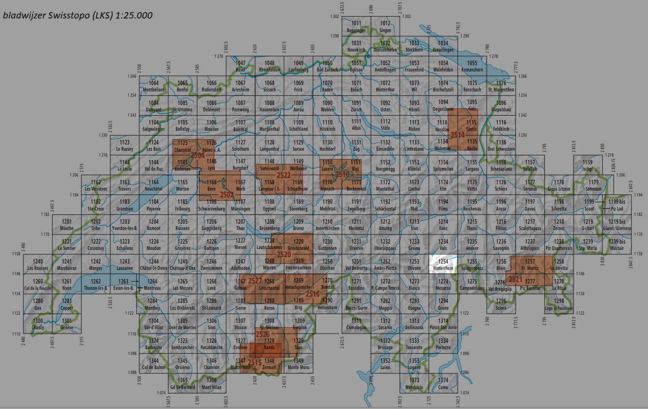 Topografische wandelkaarten van Zwitserland (Landeskarten der Schweiz), schaal 1:25.000. Kwalitatief zeer goed. Leent zich uitstekend voor het maken van wandeltochten en klimtochten, ook in hoog alpien terrein. Let wel, alle paden staan erop, maar géén gemarkeerde routes. Voor dat doel is met name de serie T-SERIE uitgegeven. Niettemin zijn deze 1:25.000 kaarten - wegens de sublieme cartografie en detaillering - perfecte wandelkaarten. De kaart zit in een door ons toegevoegd soepel transparant hoesje, ook handig tijdens het wandelen. | TIP: als je op de serienaam klikt verschijnen alle kaarten uit deze reeks, van deze regio, op nummervolgorde.