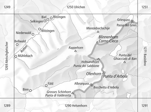 wandelkaart Bellwald, Ofenhorn, Griespass