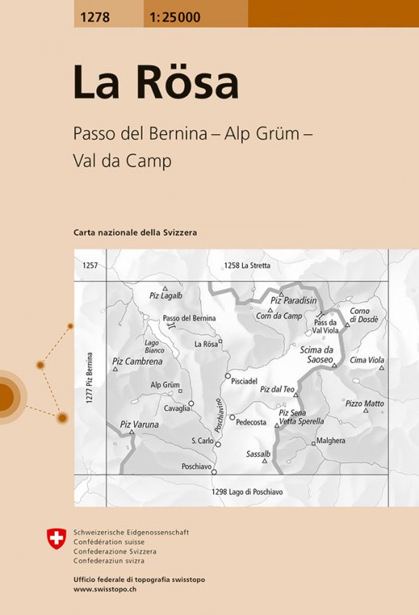 Kaarten en gidsen > Wandelen > Wandelkaarten > Europa > Zwitserland en Oostenrijk (en Alpen als geheel) > Zwitserland > Graubünden > topografische wandelkaart CH-1278 La Rösa [2017]
