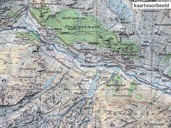 Topografische wandelkaarten van Zwitserland (Landeskarten der Schweiz), schaal 1:25.000. Kwalitatief zeer goed. Leent zich uitstekend voor het maken van wandeltochten en klimtochten, ook in hoog alpien terrein. Let wel, alle paden staan erop, maar géén gemarkeerde routes. Voor dat doel is met name de serie T-SERIE uitgegeven. Niettemin zijn deze 1:25.000 kaarten - wegens de sublieme cartografie en detaillering - perfecte wandelkaarten. De kaart zit in een door ons toegevoegd soepel transparant hoesje, ook handig tijdens het wandelen. | TIP: als je op de serienaam klikt verschijnen alle kaarten uit deze reeks, van deze regio, op nummervolgorde.