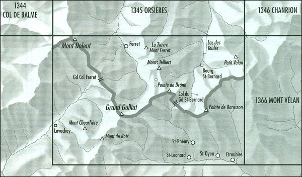 wandelkaart Ferret, Lac des Toules, Étroubles