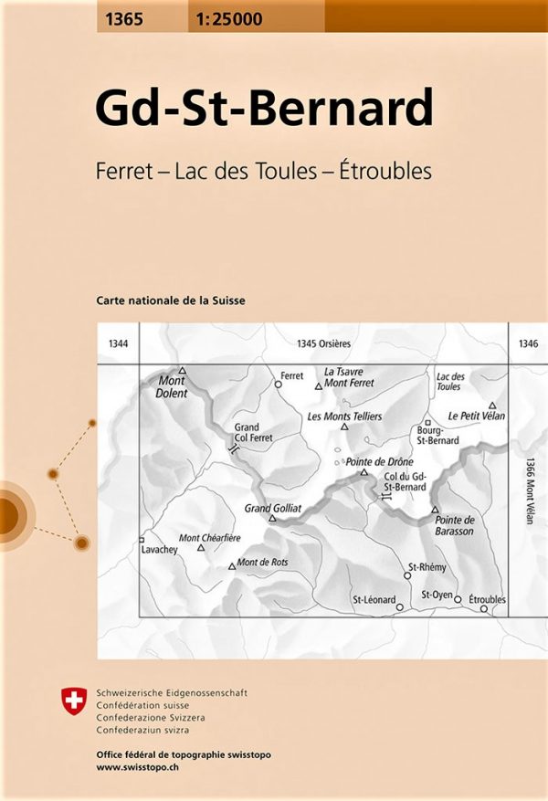 Kaarten en gidsen > Wandelen > Wandelkaarten > Europa > Zwitserland en Oostenrijk (en Alpen als geheel) > Zwitserland > Wallis > Unterwallis > topografische wandelkaart CH-1365 Grand St.Bernard [2018]