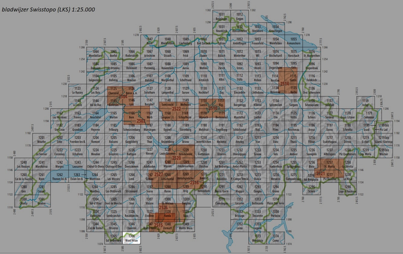 Topografische wandelkaarten van Zwitserland (Landeskarten der Schweiz), schaal 1:25.000. Kwalitatief zeer goed. Leent zich uitstekend voor het maken van wandeltochten en klimtochten, ook in hoog alpien terrein. Let wel, alle paden staan erop, maar géén gemarkeerde routes. Voor dat doel is met name de serie T-SERIE uitgegeven. Niettemin zijn deze 1:25.000 kaarten - wegens de sublieme cartografie en detaillering - perfecte wandelkaarten. De kaart zit in een door ons toegevoegd soepel transparant hoesje, ook handig tijdens het wandelen. | TIP: als je op de serienaam klikt verschijnen alle kaarten uit deze reeks, van deze regio, op nummervolgorde.