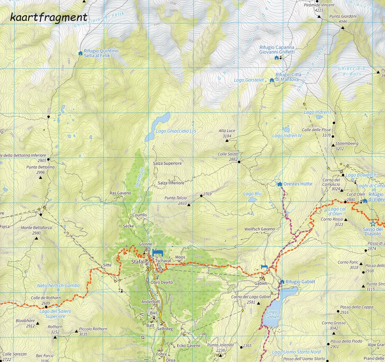 Kaarten en gidsen > Wandelen > Wandeltochten > Meerdaagse wandelroutes > Europa > Zuid-Europa / Middellandse Zee > Italië > Noord-Italië > Turijn, Piemonte > Tour of Monte Rosa | wandelkaart 1:40.000