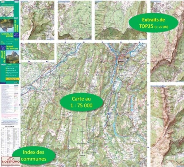 De kaarten geven een nauwkeurig beeld van het reliëf aan de hand van hoogtelijnen. Daarnaast aanduiding van gites d’étapes en refuges, grandes randonnées, symbolen voor uitzichtpunten, bijzondere gebouwen, kastelen, grotten, en tenslotte een coördinatenstelsel ten behoeve van gps-gebruikers.