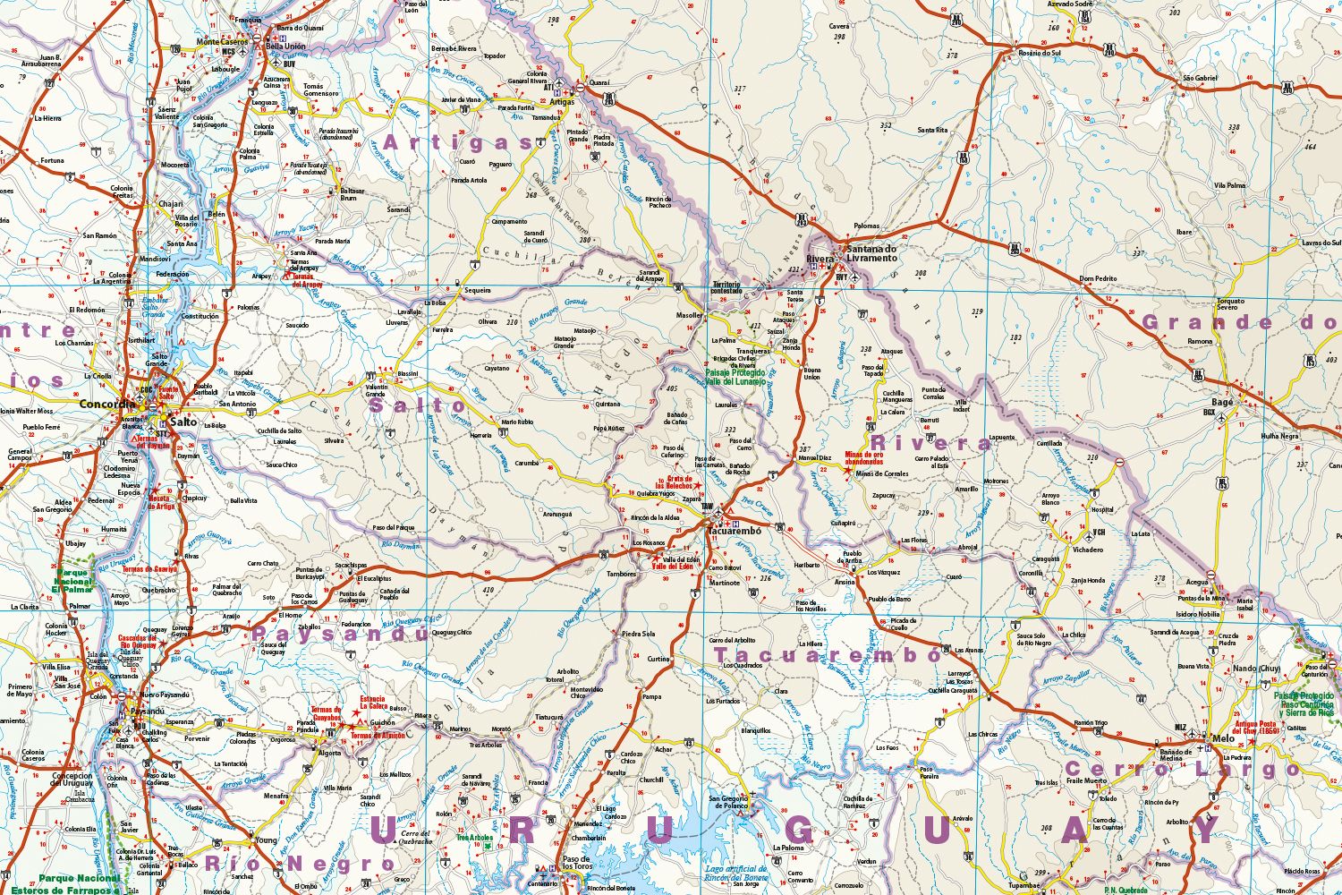 Uruguay & Paraguay landkaart, wegenkaart 1:1.000.000