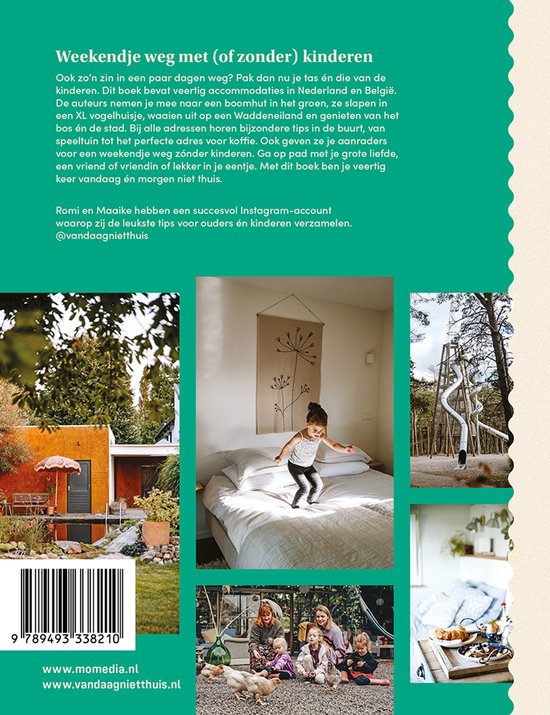Altijd een goed idee: een paar dagen weg van huis, naar een bijzondere bestemming in Nederland of België. Een prachtig huisje in het groen of aan zee of ontdek samen een bijzondere stad. Naast unieke slaapplekken delen Maaike en Romi vooral ook veel tips in de buurt: een leuk restaurant of activiteit met kinderen. Met dit boek kun je een compleet weekend weg. Het zijn 40 accommodaties en zo'n 185 unieke extra adressen. Van groepshuizen tot solotrips, geen enkel weekend is hetzelfde.
