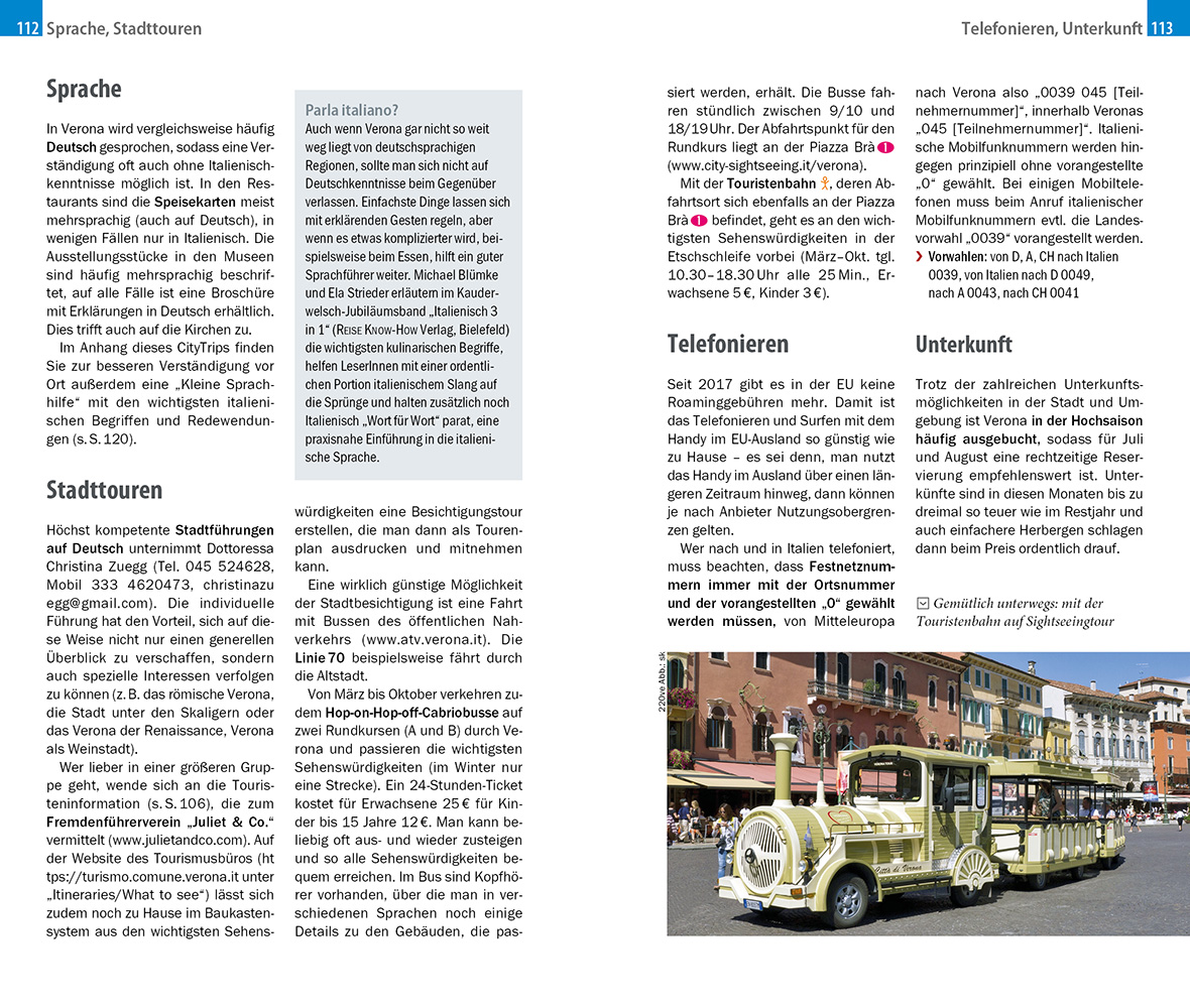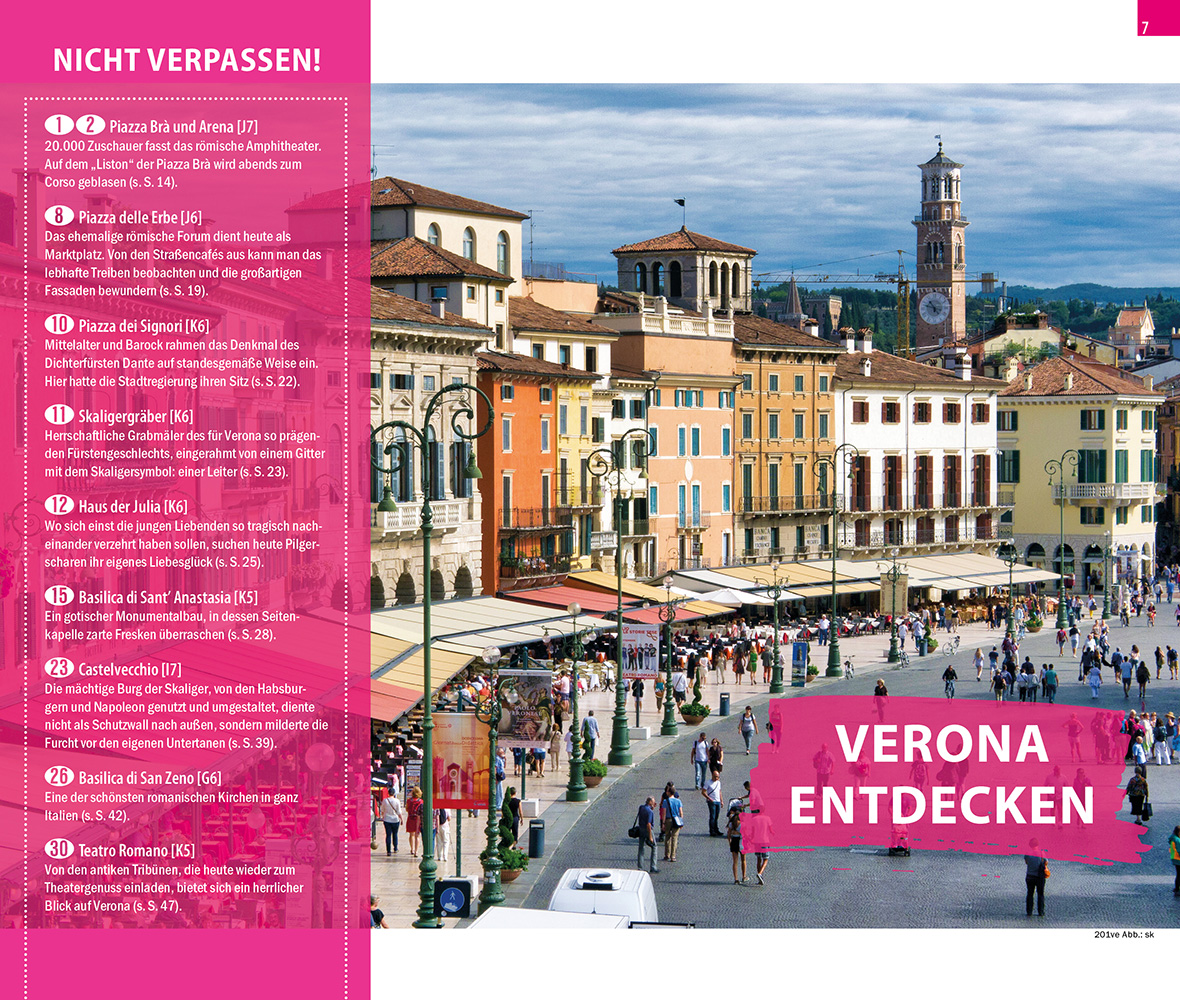 Dieser aktuelle Stadtführer ist der ideale Begleiter, um alle Seiten der italienischen Provinzhauptstadt Verona selbstständig zu entdecken:- Die wichtigsten Sehenswürdigkeiten und Museen der Stadt sowie weniger bekannte Attraktionen und Viertel ausführlich vorgestellt und bewertet - Faszinierende Architektur zwischen Meisterwerken des Mittelalters und römischer Theaterkulisse - Abwechslungsreicher Stadtspaziergang - Erlebnisvorschläge für ein langes Wochenende - Shoppingtipps vom traditionellen Markt bis zu hervorragenden Delikatessengeschäften - Die besten Lokale der Stadt und allerlei Wissenswertes über die Veroneser Küche - Tipps für die Abend- und Nachtgestaltung: vom Operngenuss unter freiem Himmel bis zur angesagtesten Klublounge - Von Bardolino bis Valpolicella: das Veroneser Weinland - Verona zum Träumen und Entspannen: Piazza Duomo, Giardino Giusti und Cimitero Monumentale - Ausgewählte Unterkünfte von preiswert bis ausgefallen - Alle praktischen Infos zu Anreise, Preisen, Stadtverkehr, Touren, Events, Hilfe im Notfall ... - Hintergrundartikel mit Tiefgang: Geschichte, Mentalität der Bewohner, Leben in der Stadt ... - Kleine Sprachhilfe Italienisch mit den wichtigsten Vokabeln für den Reisealltag - Faltplan zum Herausnehmen +++Dazu: kostenlose Web-App für Smartphone, Tablet und PC mit Stadtplan- und Satellitenansichten passend zum Text, Routenführung zu allen beschriebenen Sehenswürdigkeiten, Verlauf des Stadtspaziergangs, seitenbezogenen Updates nach Redaktionsschluss sowie einem Mini-Audiotrainer Italienisch