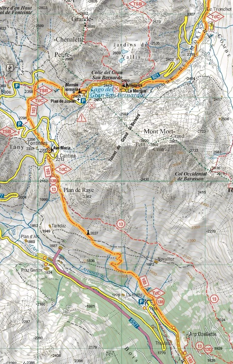 Via Francigena in Valle d'Aosta - wandelkaart 1:25.000