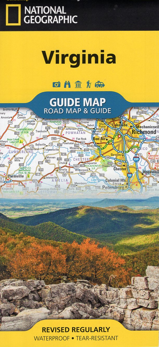 The front side is an easy-to-read road map with insets of: - Washington DC area - Charlottesville - Lynchburg - Roanoke - Southwest Virginia - Colonial National Historical Park