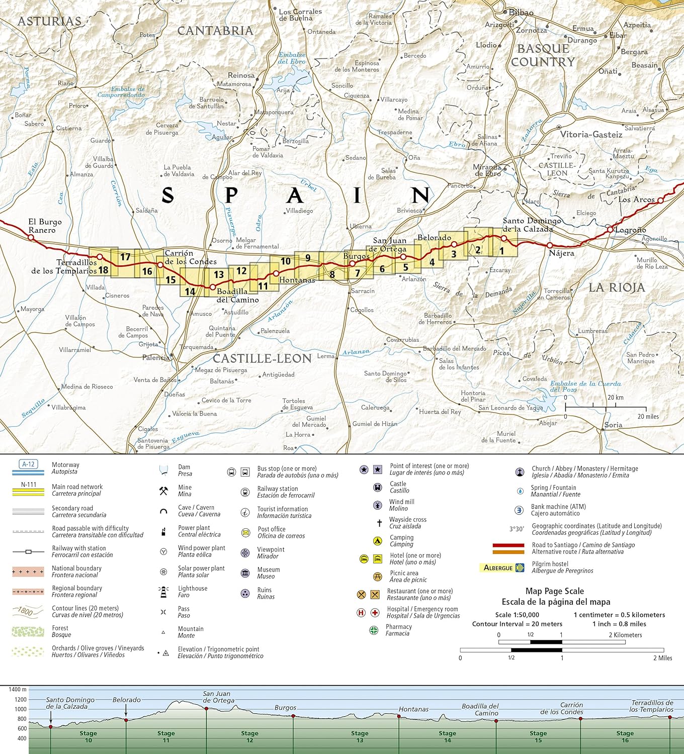 wandelatlas Santiago deel 2: Santo Domingo de la Calzada to Terradillos de los Templarios 1/50