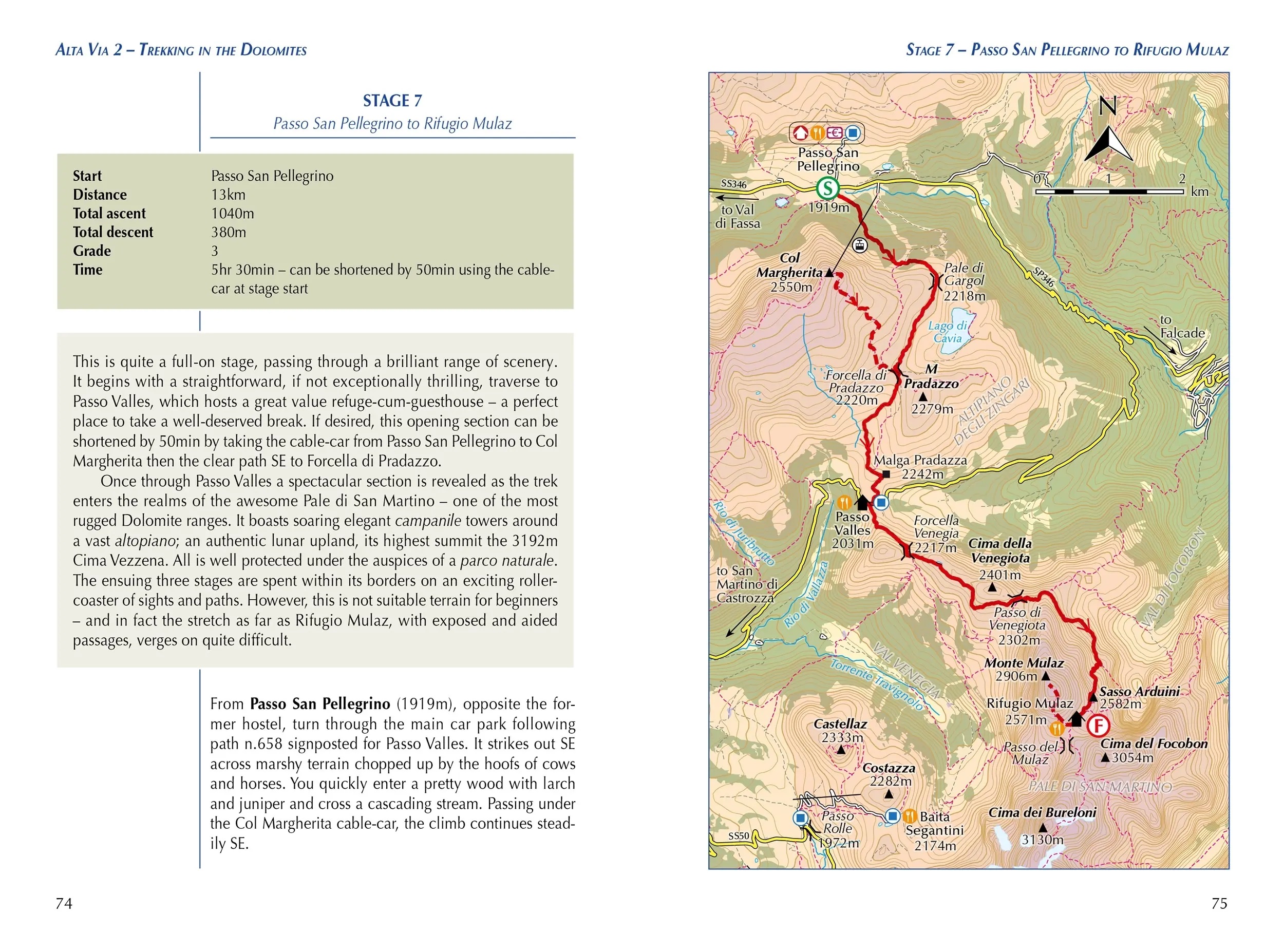 Guidebook to the Alta Via 2 through the Italian Dolomites. Suitable for experienced hikers with a head for heights, the challenging but hugely rewarding hut-to-hut trail covers 160km in 13 days and involves steep and technical terrain and exposed sections. The more demanding AV3-6 routes are described in outline. Includes 1:25K map booklet for AV2.
