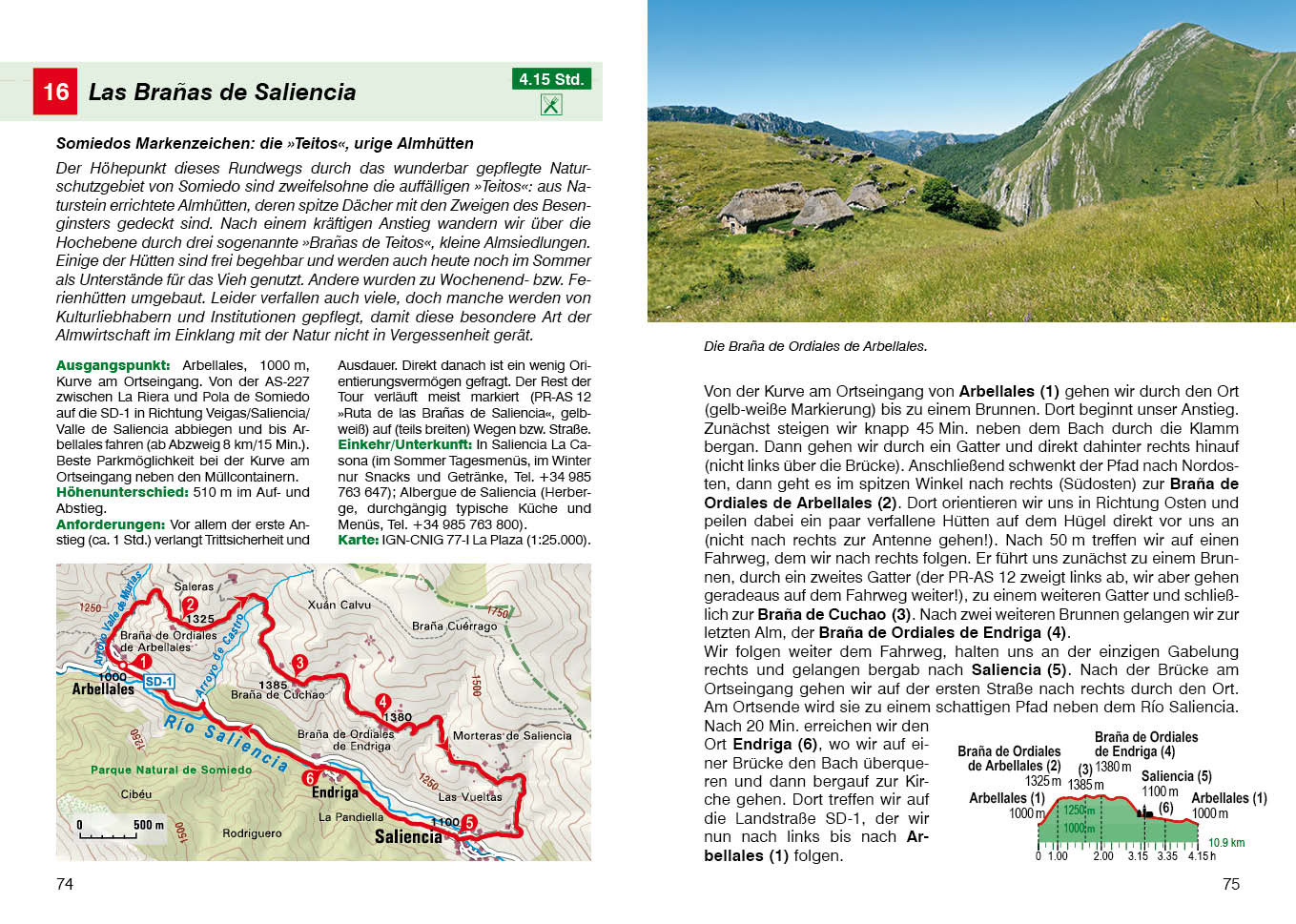 Handzaam gidsje, dat zó in je broekzak past, met (meestal zo'n vijftig) wandelingen, die in lengte variëren van een paar uur tot maximaal een dag. Met een duidelijke onderverdeling in een paar moeilijkheidscategorieën (eenvoudig tot pittig). De eenvoudige (blauwe) wandelingen zijn ook goed met kinderen te doen. De wandelingen zijn ingetekend op - vrij simpele - kaartjes. De routebeschrijvingen zijn prima en er wordt aangegeven waar je onderweg iets kunt eten, drinken en, waar dat van pas komt, overnachten. Duitstalig. | Asturien ist ein nahezu unentdecktes Juwel im grünen Norden Spaniens. Seine hervorragende Gastronomie, lebendige Kultur und besonders die abwechslungsreiche Landschaft machen diese Region zu einem fantastischen Reiseziel.Unter Alpinisten ist Asturien vor allem durch die Picos de Europa bekannt, denen bereits ein eigener Rother Wanderführer gewidmet ist. Dennoch kommen auch erfahrene Bergwanderer voll auf ihre Kosten mit Touren auf bis zu 2417 Meter hohe Gipfel. Außerdem finden sich Wanderungen durch das asturische Mittelgebirge, atemberaubende Schluchten, urige Wälder, Ruinen von Keltensiedlungen sowie die asturische Steilküste mit ihren traumhaften kleinen Buchten. Abgerundet wird der Wanderführer durch Spaziergänge zu Wasserfällen sowie touristisch interessanten Ausflugszielen wie Höhlen, Freilichtmuseen und Dinosaurierspuren, die sich ideal für Familien mit Kindern anbieten.