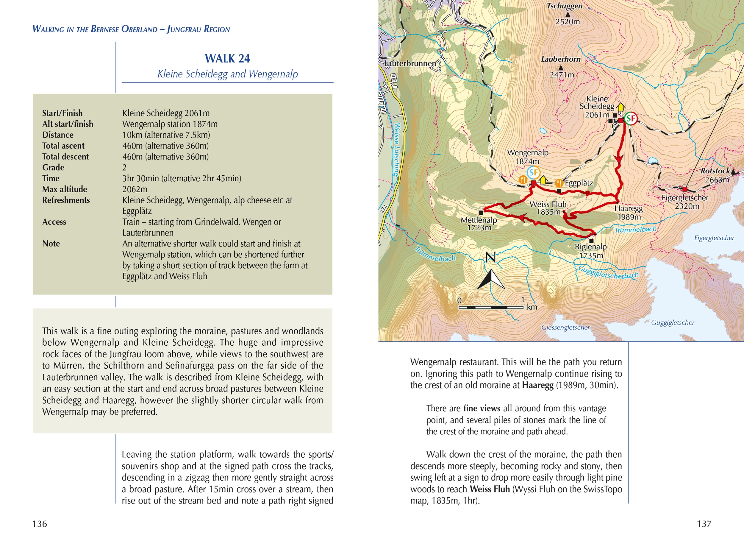 This guidebook describes 50 graded walks in the Jungfrau region of Switzerland. Ranging from 5 to 23.5km, the routes visit valleys, waterfalls, and alpine huts offering refreshments and accommodation. With shorter hour-long walks and day-long mountain ascents, it contains something for everyone.