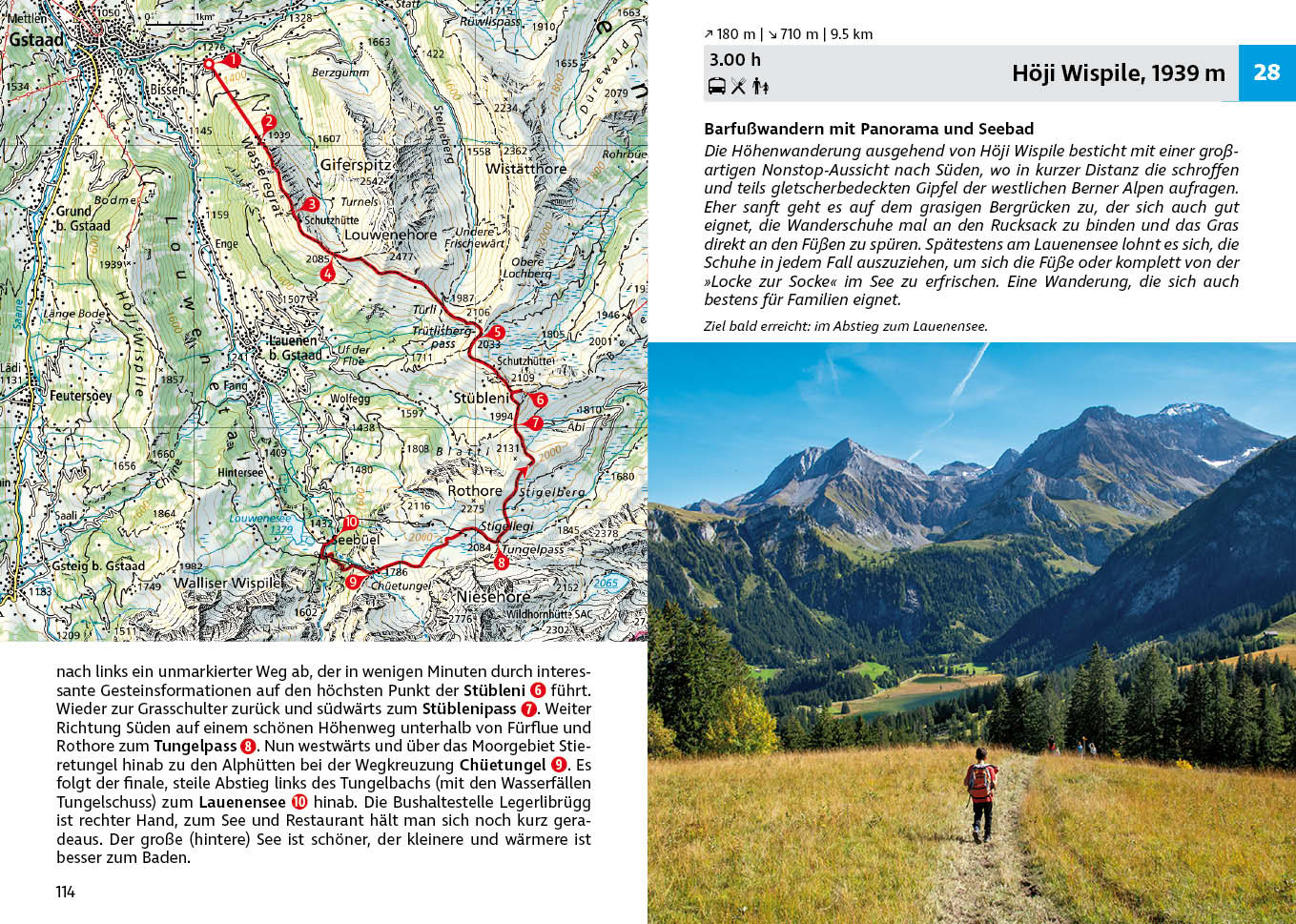 Handzaam gidsje, dat zó in je broekzak past, met (meestal zo'n vijftig) wandelingen, die in lengte variëren van een paar uur tot maximaal een dag. Met een duidelijke onderverdeling in een paar moeilijkheidscategorieën (eenvoudig tot pittig). De eenvoudige (blauwe) wandelingen zijn ook goed met kinderen te doen. De wandelingen zijn ingetekend op - vrij simpele - kaartjes. De routebeschrijvingen zijn prima en er wordt aangegeven waar je onderweg iets kunt eten, drinken en, waar dat van pas komt, overnachten. Duitstalig.
