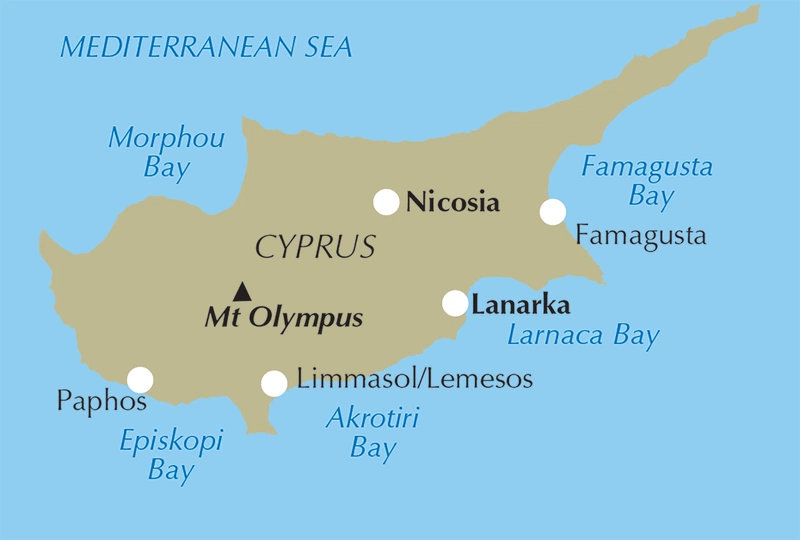 Paphos, Polis, Troodos Square, Platres, Kakopetria, Kyrenia/Girne, Lapta, Alevkaya