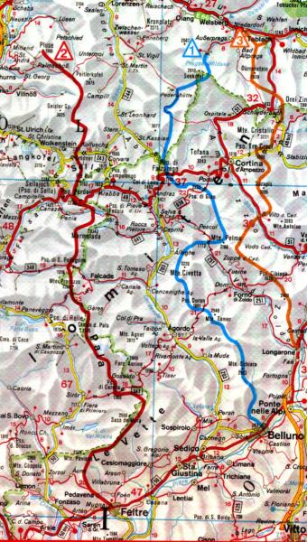 De bekende rode wandelgidsjes in broekzakformaat. Duidelijke indeling,goede routebeschrijvingen, wandelkaartjes en korte informatie over bezienswaardigheden onderweg. Nr.1 voert van Pragser See naar Belluno (150km, 13 etappes, 1 klettersteig, verder relatief eenvoudig. Dit laatste geldt ook voor route 2. Route nummer 3 is voor de meer ervaren bergsporter. (Van alle tien routes zijn 1, 2, 8 en 9 relatief eenvoudig; routes 3 t/m 7 oplopend in moeilijkheidsgraad.)