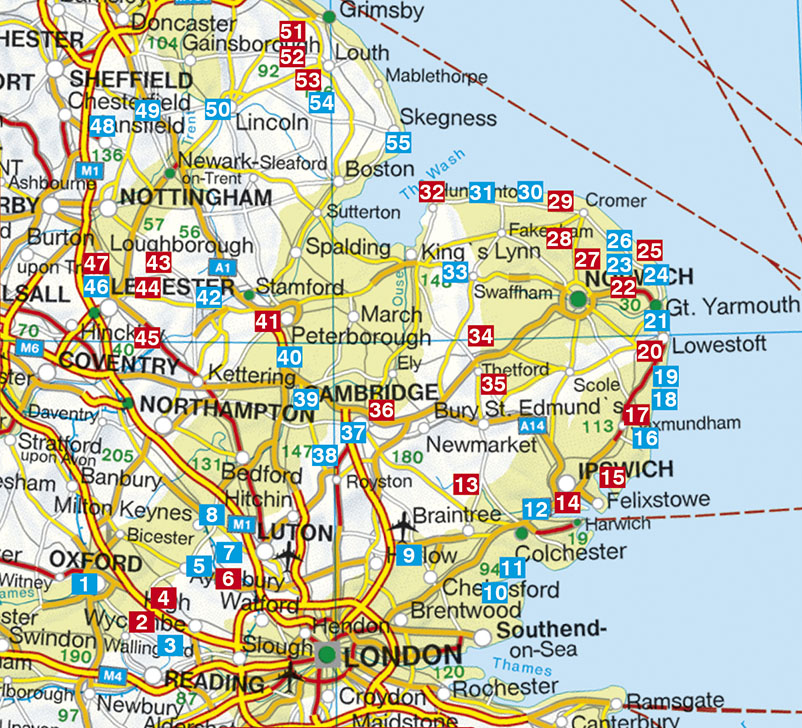 Handzaam gidsje, dat zó in je broekzak past, met (meestal zo'n vijftig) wandelingen, die in lengte variëren van een paar uur tot maximaal een dag. Met een duidelijke onderverdeling in een paar moeilijkheidscategorieën (eenvoudig tot pittig). De eenvoudige (blauwe) wandelingen zijn ook goed met kinderen te doen. De wandelingen zijn ingetekend op - vrij simpele - kaartjes. De routebeschrijvingen zijn prima en er wordt aangegeven waar je onderweg iets kunt eten, drinken en, waar dat van pas komt, overnachten. Duitstalig. | Ostengland ist das perfekte Wanderziel für alle, die gernstille Natur, Wasser und Kultur erleben. Im Gebiet von derNordseeküste East Anglias bis ins Herz der Midlands kannman wunderbar abseits großer Touristenströme auf Entdeckungstourgehen: Naturoasen im Hinterland, Strändeund Klippen an der Küste inmitten eines Lichts, das schonMaler wie Gainsborough und Constable faszinierte. Dazuviele Sehenswürdigkeiten am Weg, strohgedeckte Cottagesund urige Pubs – hier genießt man das typische England.