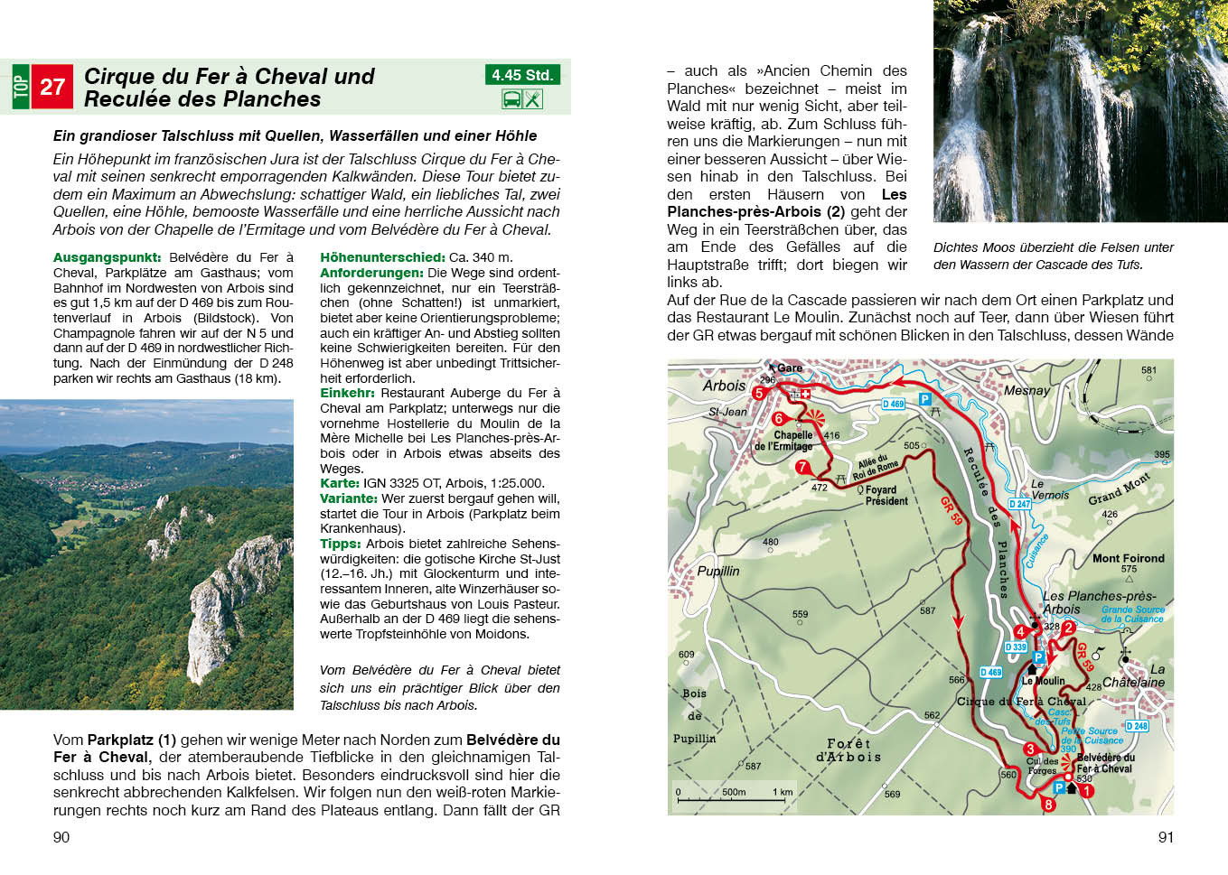 Handzaam gidsje, dat zó in je broekzak past, met (meestal zo'n vijftig) wandelingen, die in lengte variëren van een paar uur tot maximaal een dag. Met een duidelijke onderverdeling in een paar moeilijkheidscategorieën (eenvoudig tot pittig). De eenvoudige (blauwe) wandelingen zijn ook goed met kinderen te doen. De wandelingen zijn ingetekend op - vrij simpele - kaartjes. De routebeschrijvingen zijn prima en er wordt aangegeven waar je onderweg iets kunt eten, drinken en, waar dat van pas komt, overnachten. Duitstalig. | Wanderführer für jeden Geschmack: klassische Ziele wie die Wasserfälle des Herisson und der Talschluss von Baume-les-Messieurs, einsame Wege wie über die Seenplatte von Écromagny, kurze einfache Touren oder längere, schwierigere Wanderungen. Die genauen Tourenbeschreibungen enthalten detaillierte Wanderkärtchen mit eingezeichnetem Routenverlauf und ein aussagekräftiges Höhenprofil. Nützliche Informationen zu Gehzeiten, Infrastruktur und Sehenswertem unterwegs sowie eindrucksvolle Farbfotos runden diesen Wanderführer ab.