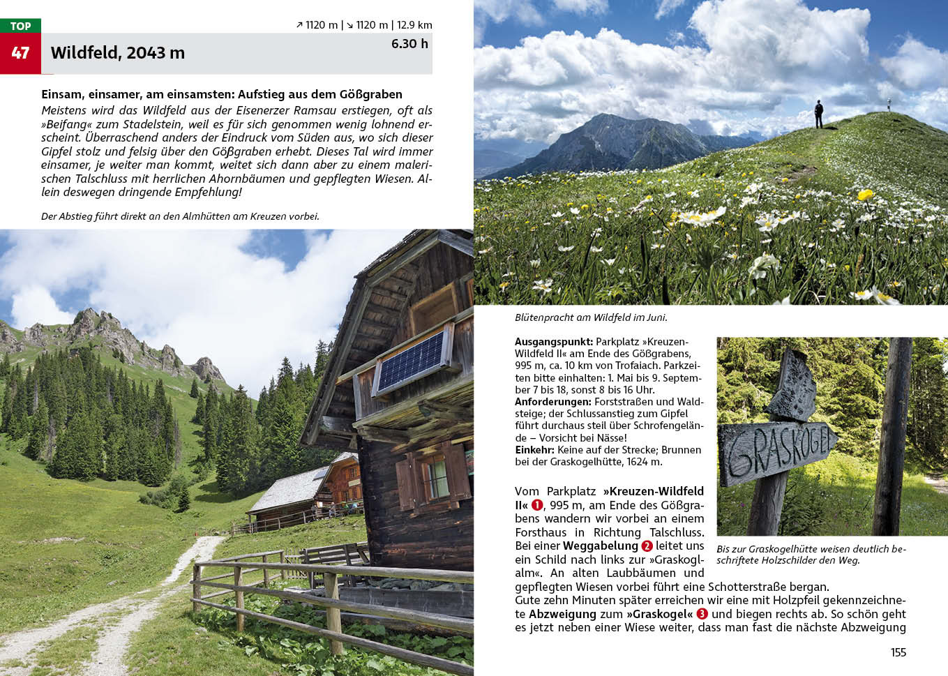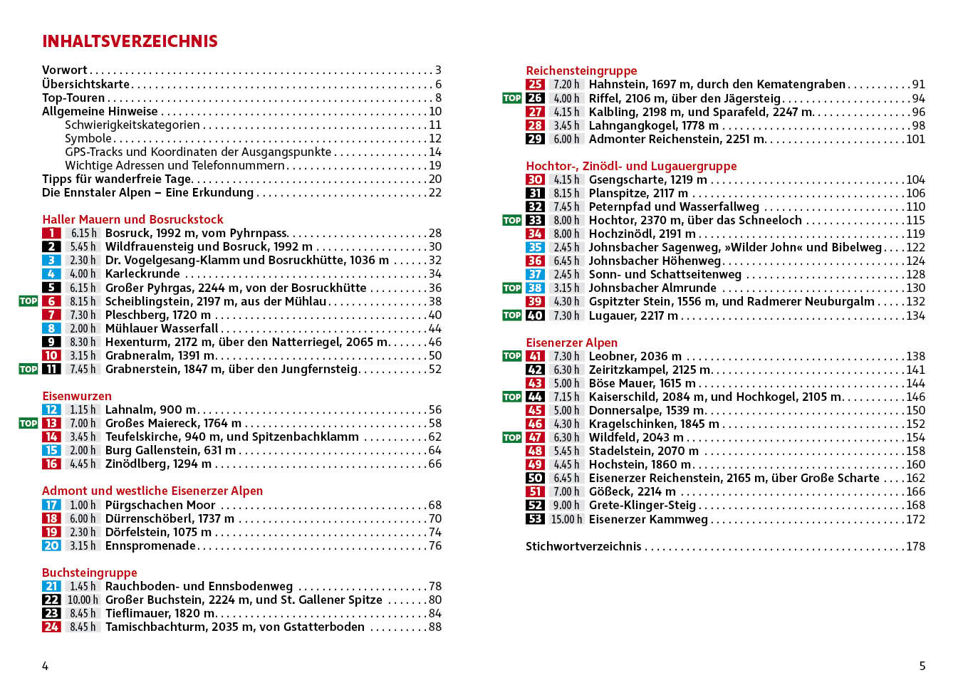 Handzaam gidsje, dat zó in je broekzak past, met (meestal zo'n vijftig) wandelingen, die in lengte variëren van een paar uur tot maximaal een dag. Met een duidelijke onderverdeling in een paar moeilijkheidscategorieën (eenvoudig tot pittig). De eenvoudige (blauwe) wandelingen zijn ook goed met kinderen te doen. De wandelingen zijn ingetekend op - vrij simpele - kaartjes. De routebeschrijvingen zijn prima en er wordt aangegeven waar je onderweg iets kunt eten, drinken en, waar dat van pas komt, overnachten. Duitstalig.