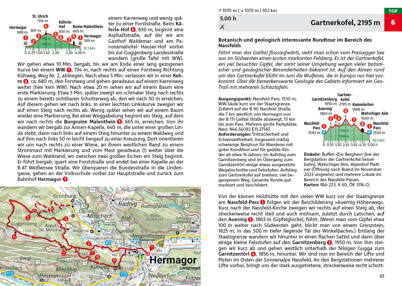 Handzaam gidsje, dat zó in je broekzak past, met (meestal zo'n vijftig) wandelingen, die in lengte variëren van een paar uur tot maximaal een dag. Met een duidelijke onderverdeling in een paar moeilijkheidscategorieën (eenvoudig tot pittig). De eenvoudige (blauwe) wandelingen zijn ook goed met kinderen te doen. De wandelingen zijn ingetekend op - vrij simpele - kaartjes. De routebeschrijvingen zijn prima en er wordt aangegeven waar je onderweg iets kunt eten, drinken en, waar dat van pas komt, overnachten. Duitstalig.