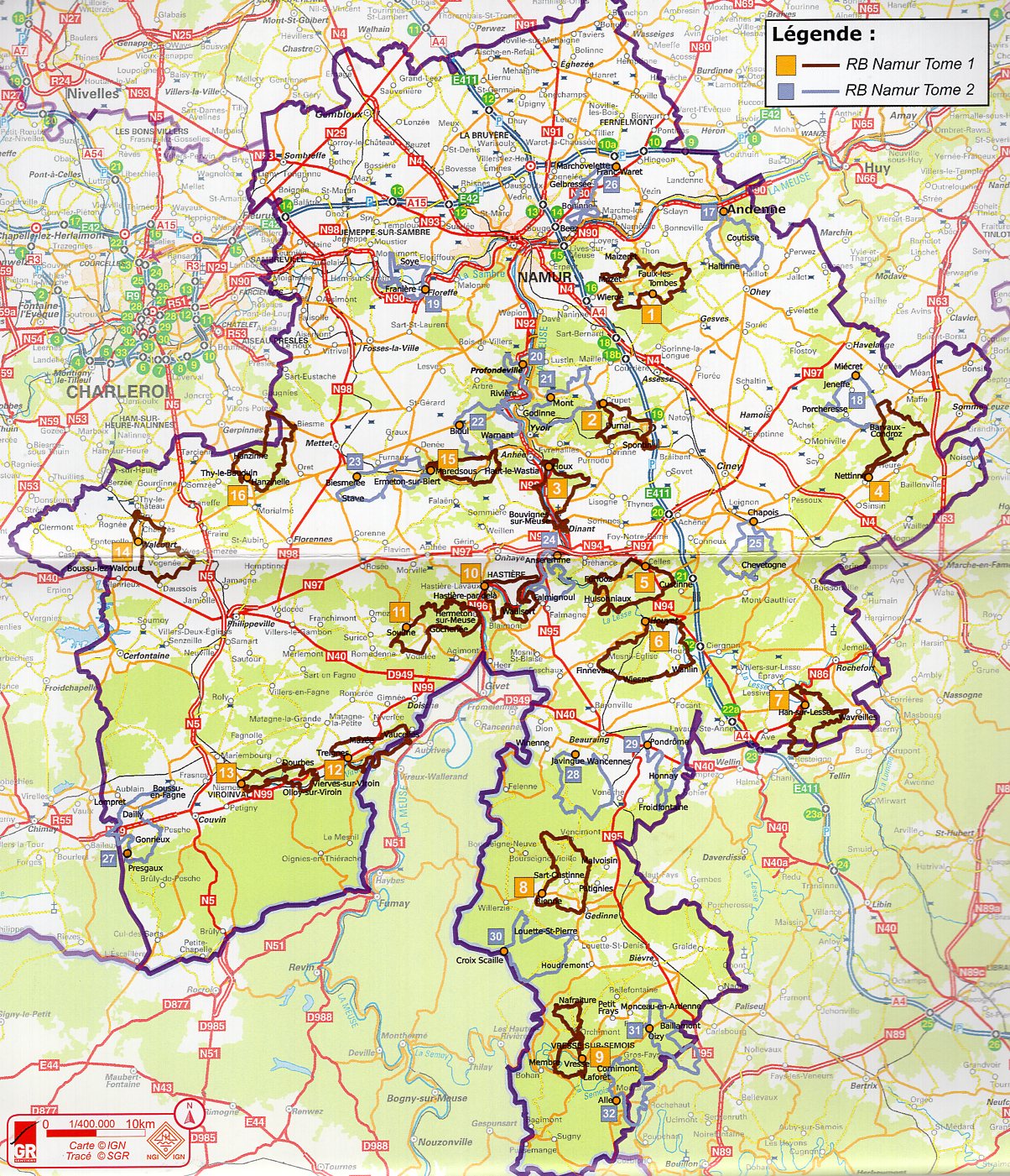 De provincie Namen heeft een dicht net van GR-paden. Dit een topogids met 16 dagwandelingen in lusvorm, telkens bestaande uit een of meer GR-paden gecombineerd met niet-bewegwijzerde trajecten.
