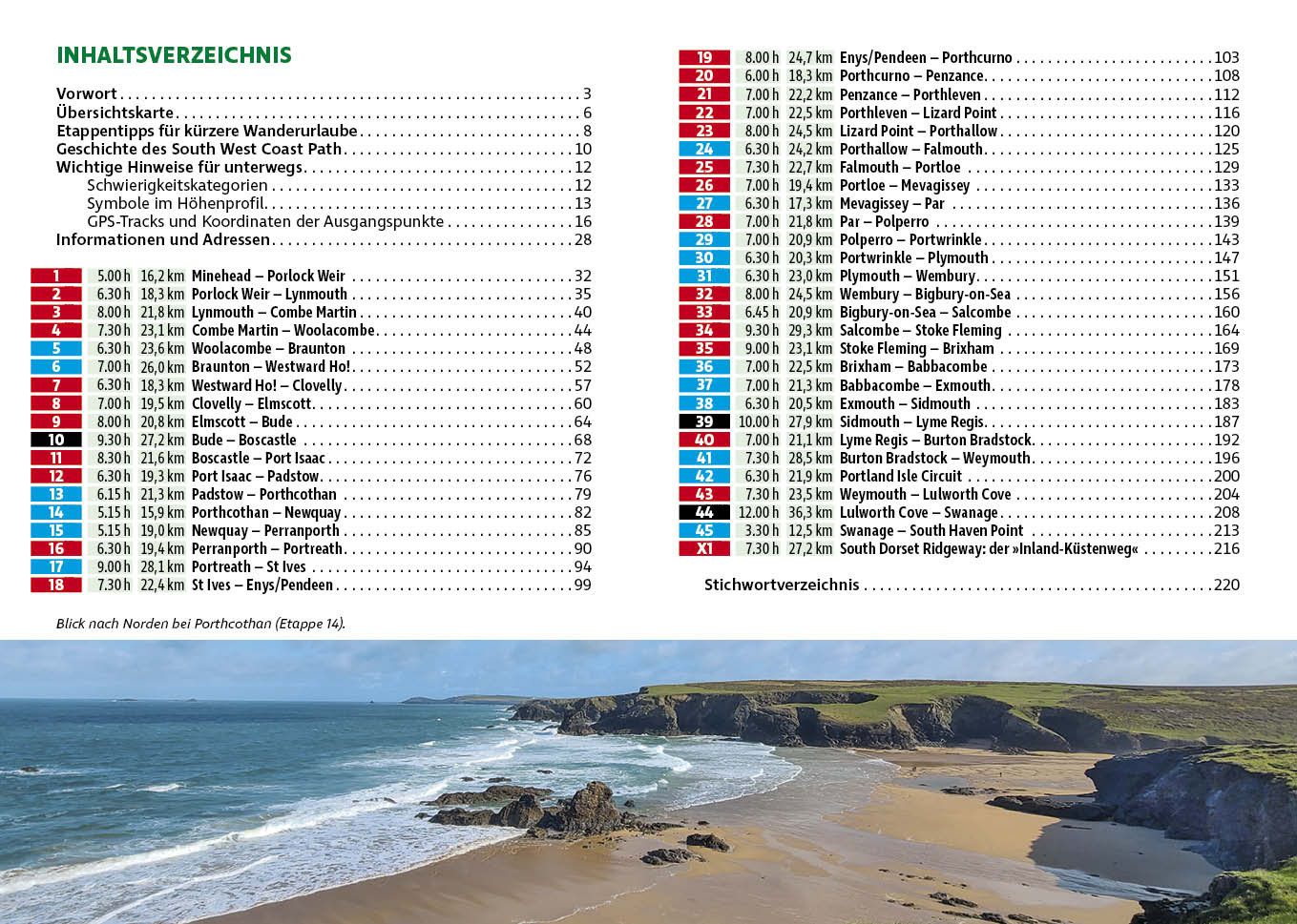 Der Rother Wanderführer macht Planung der Mehrtagestour auf dem SWCP ganz einfach. Mit zuverlässigen Wegbeschreibungen, detaillierten Wanderkarten, aussagekräftigen Höhenprofilen und geprüften GPS-Tracks zum Download erleichtert er die Orientierung auf dem gesamten Weg. Die meisten Etappen sind mit öffentlichen Verkehrsmitteln erreichbar. Dazu bietet die Autorin und England-Spezialistin Edith Kreutner wertvolle Tipps zu Unterkünften, Restaurants und Sehenswürdigkeiten.