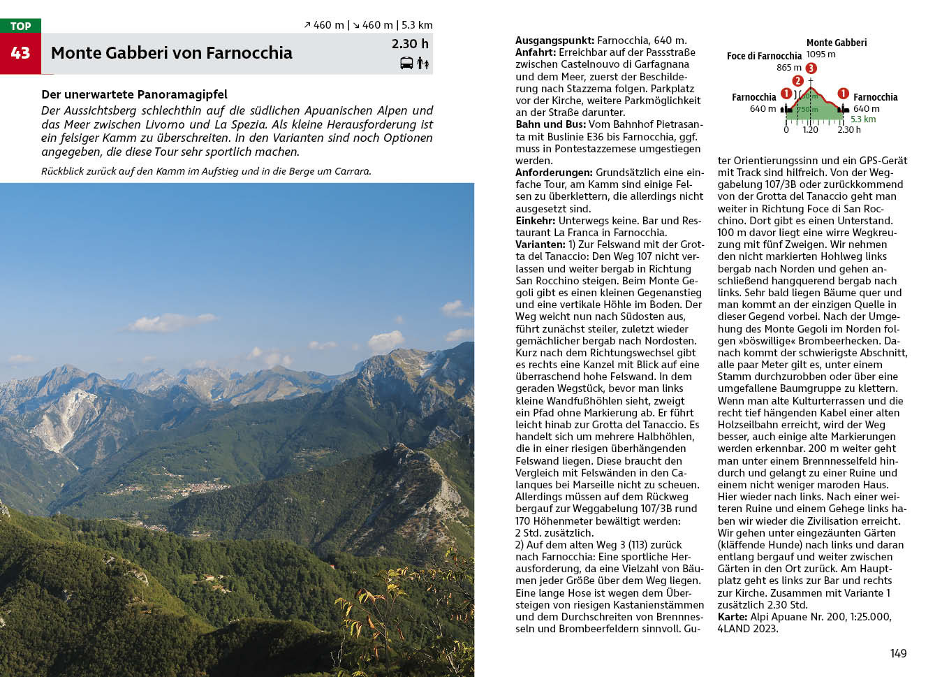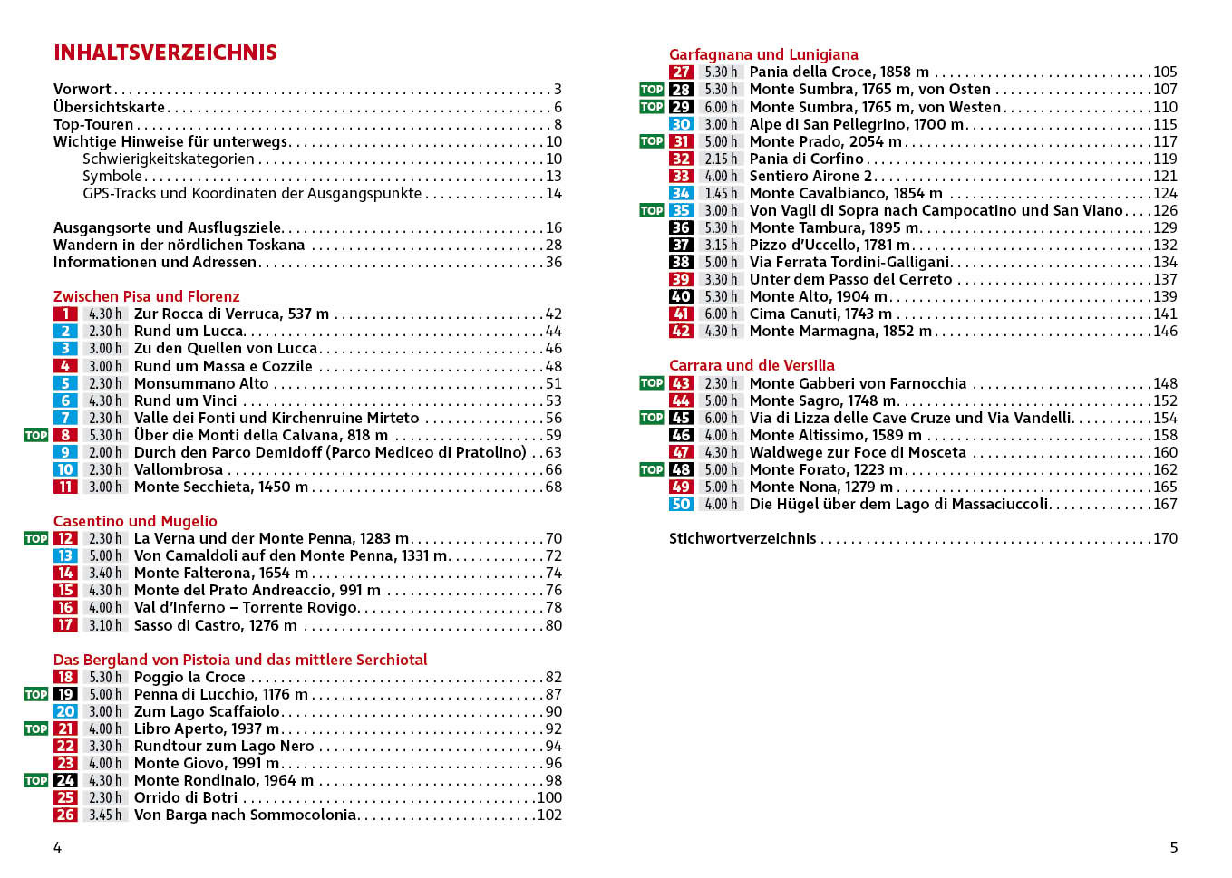 Handzaam gidsje, dat zó in je broekzak past, met (meestal zo'n vijftig) wandelingen, die in lengte variëren van een paar uur tot maximaal een dag. Met een duidelijke onderverdeling in een paar moeilijkheidscategorieën (eenvoudig tot pittig). De eenvoudige (blauwe) wandelingen zijn ook goed met kinderen te doen. De wandelingen zijn ingetekend op - vrij simpele - kaartjes. De routebeschrijvingen zijn prima en er wordt aangegeven waar je onderweg iets kunt eten, drinken en, waar dat van pas komt, overnachten. Duitstalig.